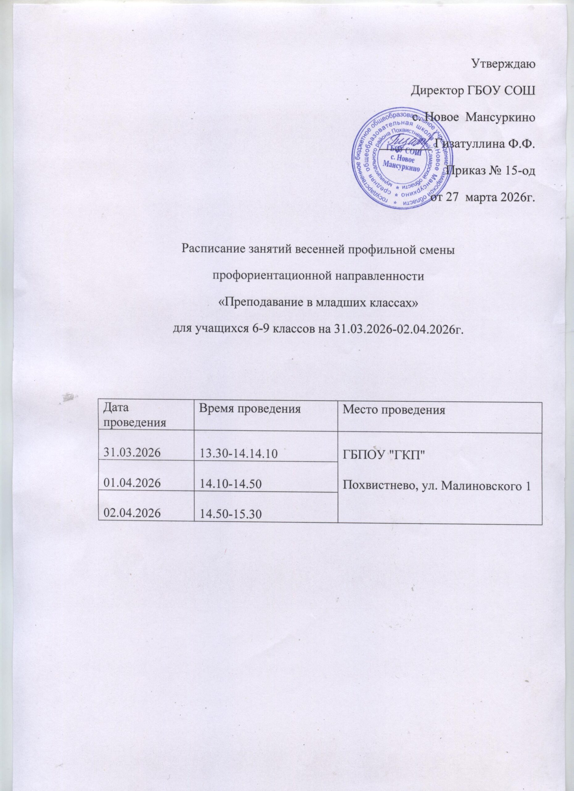 Расписание занятий весенней профориентационной смены «Преподавание в младших классах» СКАЧАТЬ